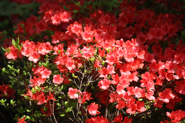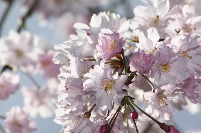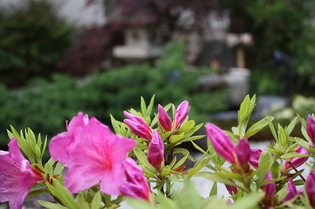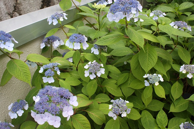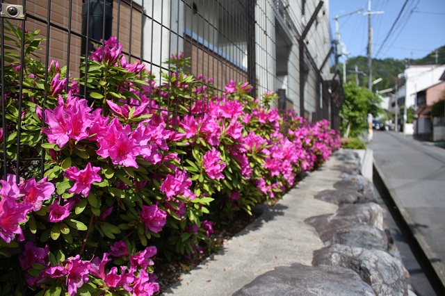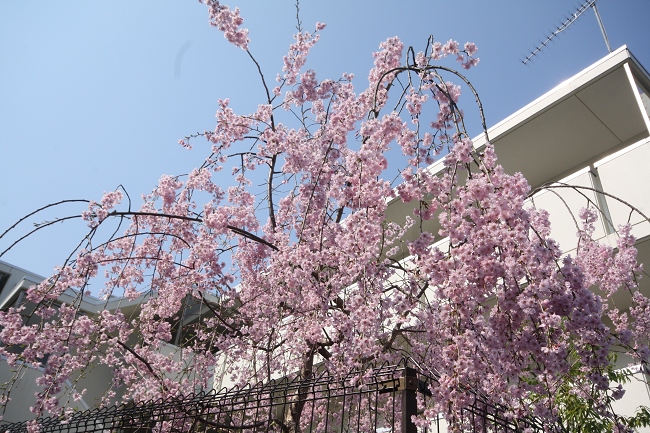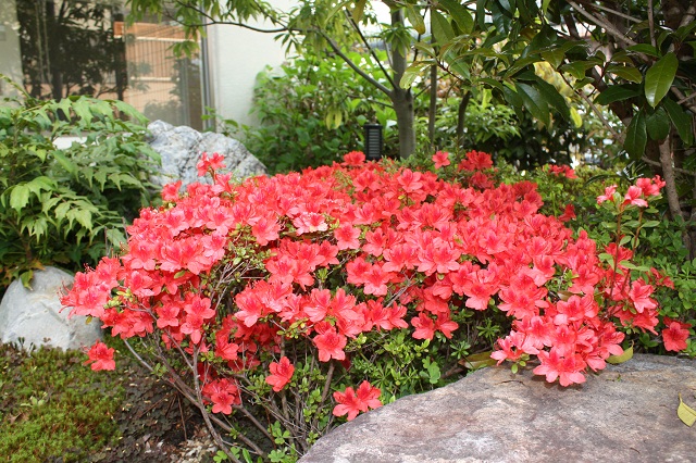 花の写真は中庭に咲く桜とツツジ、アジサイです。