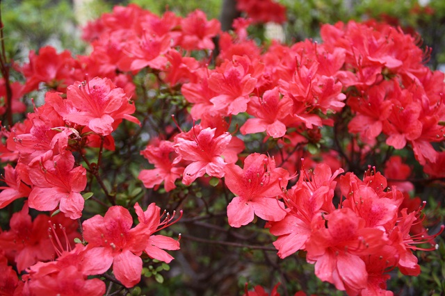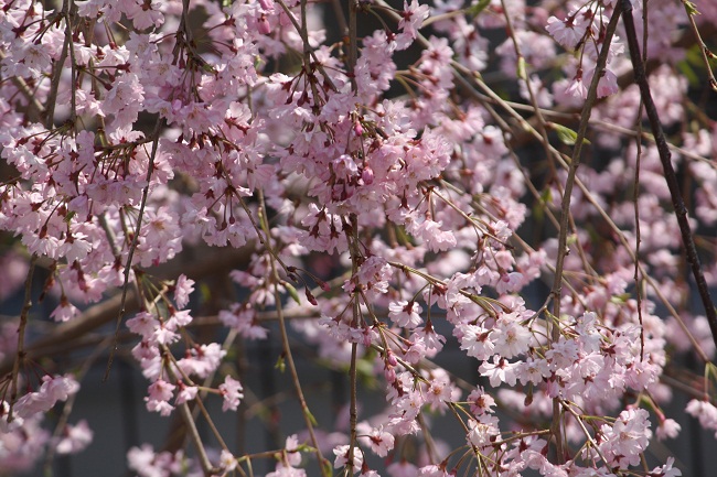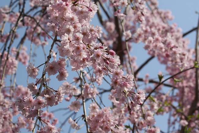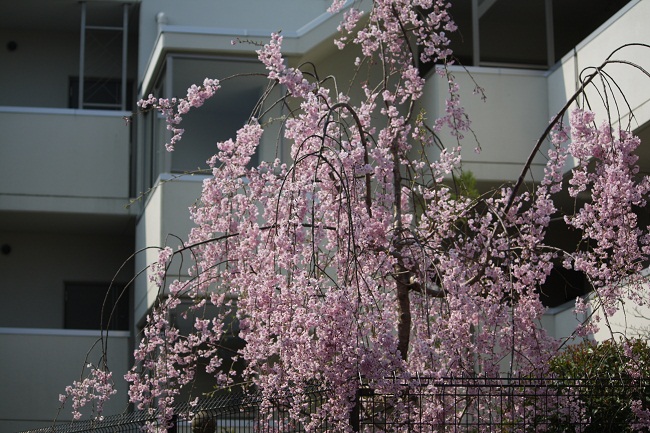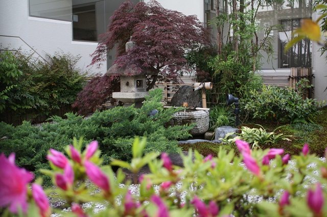 花の写真は中庭に咲く桜とツツジ、アジサイです。